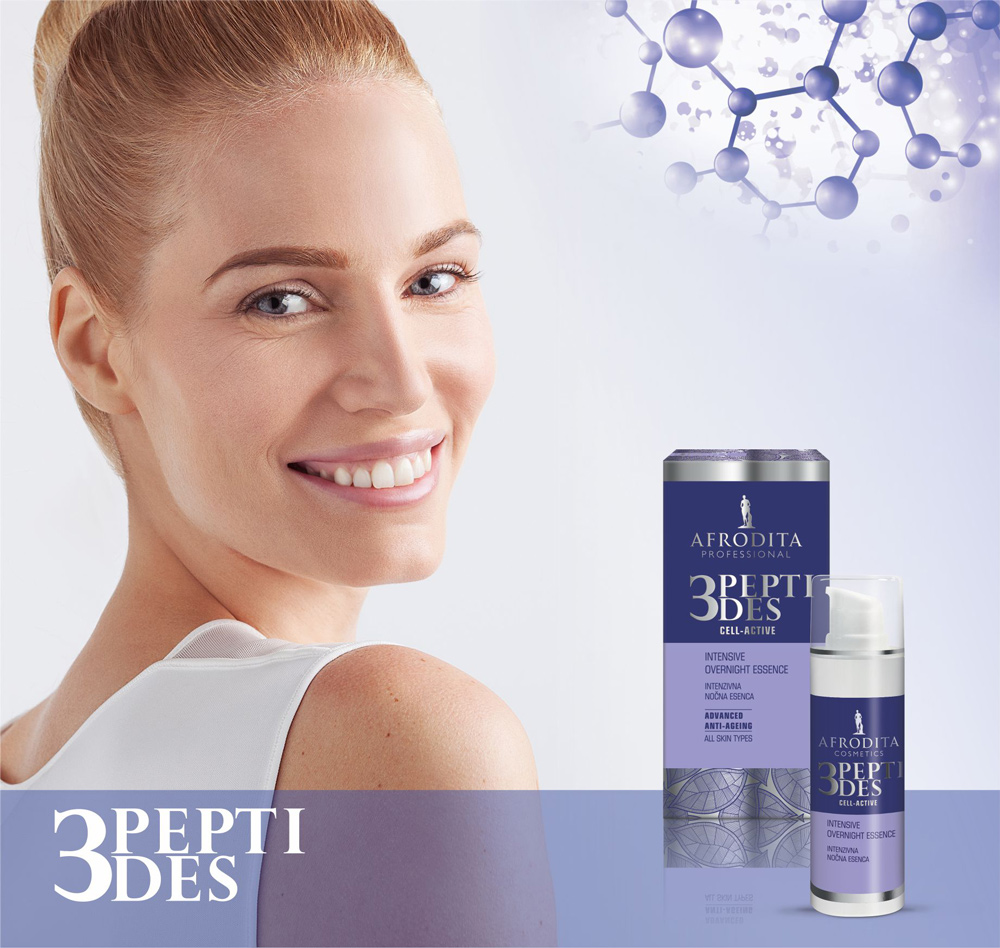 Inovacija 3 PEPTIDES predstavlja napredan pristup anti-age njezi kože koji se, izraženim znakovima starenja, suprotstavlja na razini njihovih uzroka te tako pomlađuje kožu iznutra prema van.